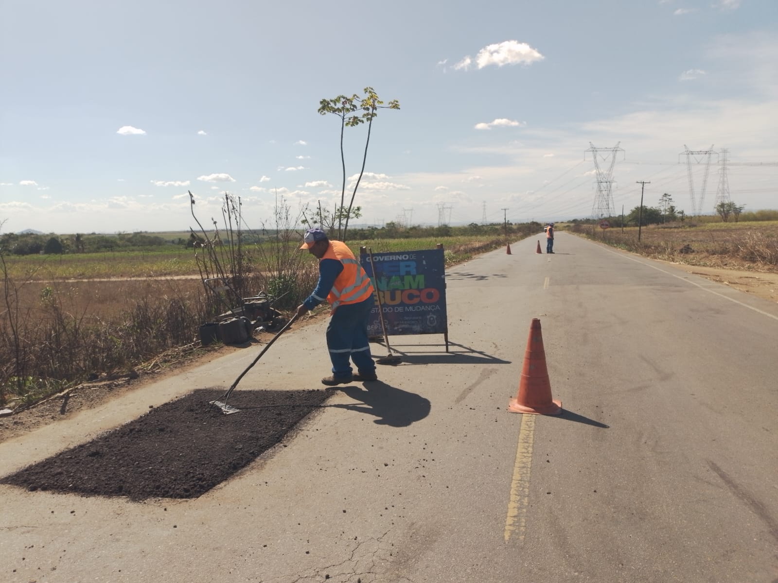 DER-PE realiza serviços de tapa-buracos em trecho de mais de 40 quilômetros da PE-041